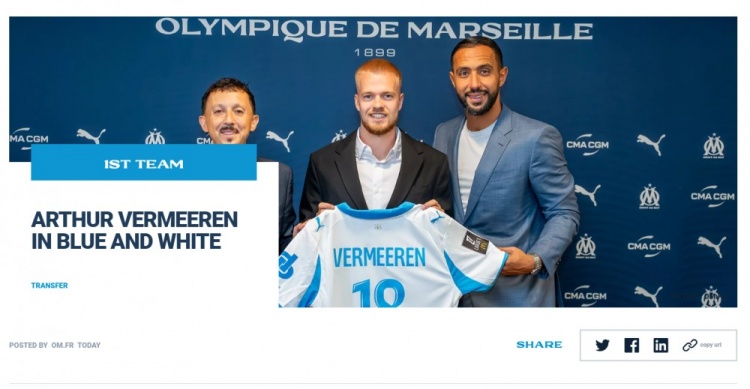 据罗马诺报道,费尔梅伦以租借形式加盟,含买断条款,马赛全额承担球员租借期间薪水。德转显示,费尔梅伦租借费300万欧,含选择买断条款。