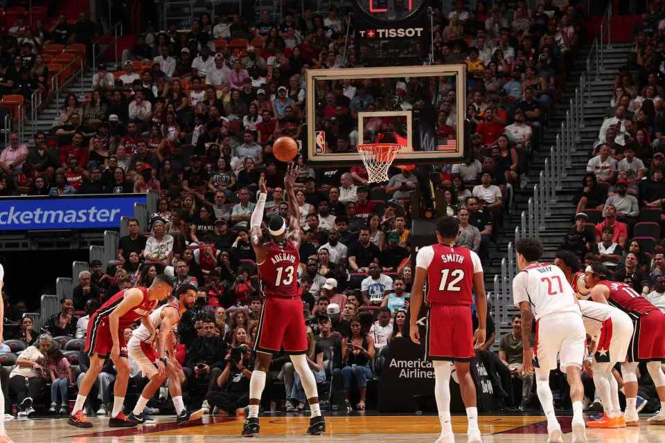 热火过去5场收获5连胜,奇才过去8场遭遇8连败。本赛季首次交锋热火客场132-101大胜奇才。本场奇才缺少浓眉哥、拉塞尔与乔治等,热火缺少韦尔、希罗、维金斯、鲍威尔、罗齐尔等。阿德巴约首节大爆发表现,他单节打满12分钟16中10,其中外线三分8中5,外加罚球7中6,一人狂轰31分3篮板1抢断1盖帽创造多项纪录,比奇才全队首节还多得到2分,引领热火首节40-29领先奇才。