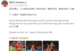 周定洋表示:“回到凤凰山,三分落袋巴适得板!最好的球迷,最燥的球场,最响的战歌!下一站青岛!再接再厉兄弟们!”