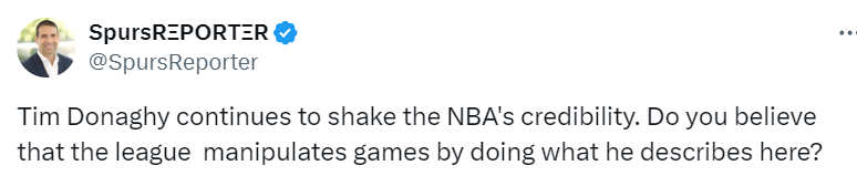 北京时间6月15日,马刺记者Garza晒出了昔日知名黑哨多纳吉关于联盟如何操控比赛的采访,引起球迷们的热议。Garza配文写道:“多纳吉继续动摇NBA的信誉。你认为联盟通过他所描述的方式操纵比赛吗?”